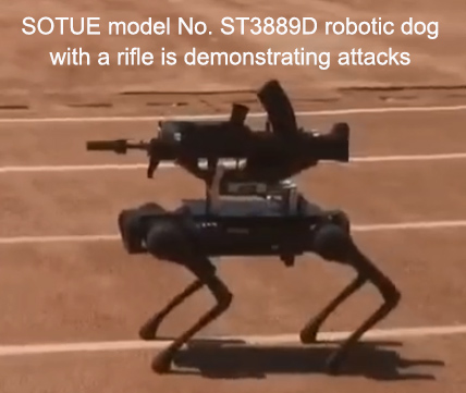 Standing dimensions: approximately 1,100 mm x 448 mm x 646 mm excluding rifle controller.